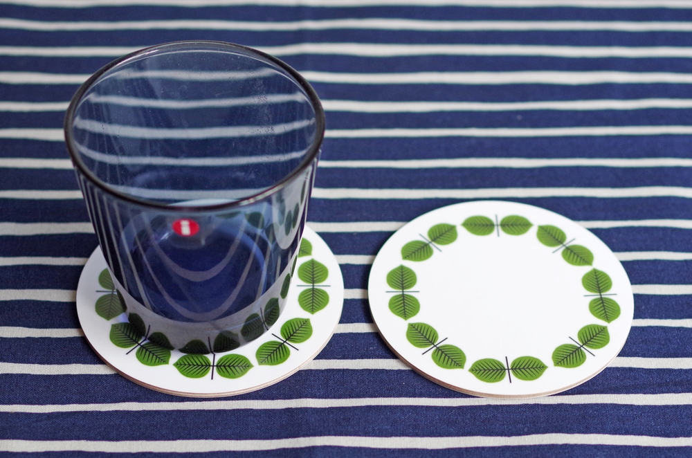 ボタニカルなグリーンカラーが映えるコースターは、グラスとの相性も良く、爽やかな卓上風景を演出してくれます。