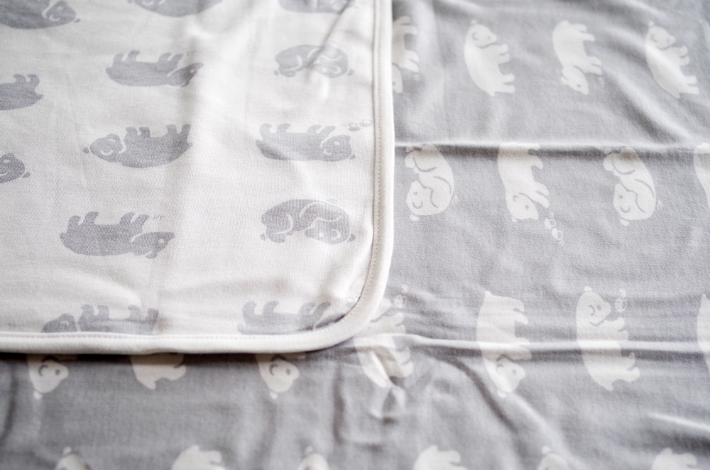 可愛らしい熊柄「BJÖRN(ビヨルン)」の、エコチャイルドブランケット。