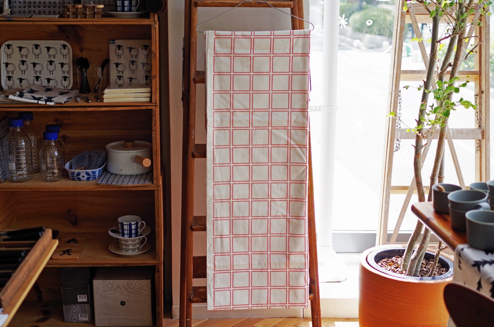洗練されたデザインのファブリックは、ヴィンテージ食器との相性もよく、先月のポストカードデザインのスタイリングに採用させていただきました。