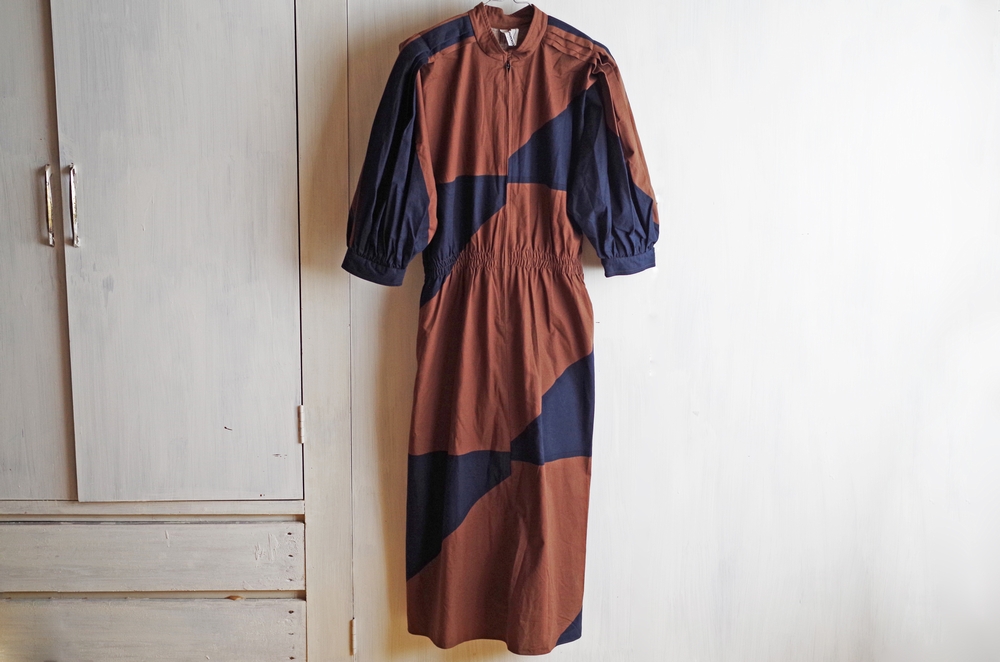 レトロだけど個性的でどこか新鮮な、素敵なパターンのワンピース。