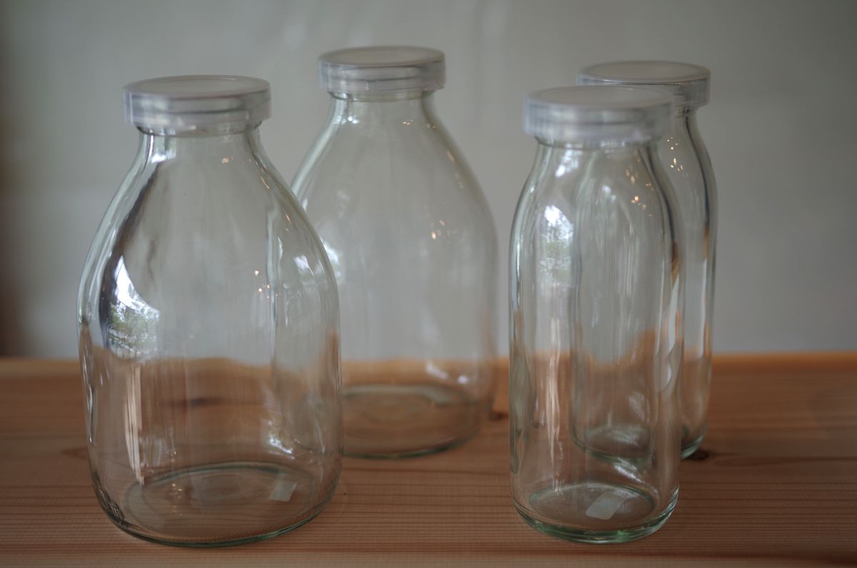 ガラス瓶(ミルク瓶)は、お花を挿したり、ちょっとした卓上に変化をもたらすことの出来るアイテムです。
