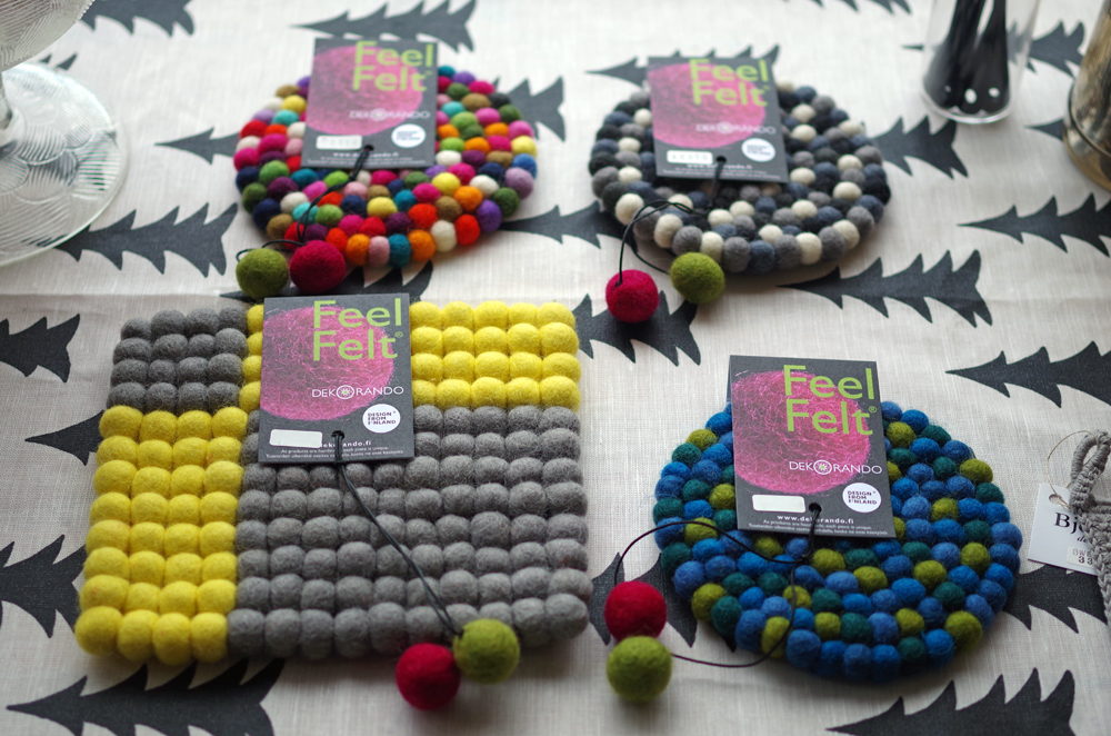 フィンランド「DECORANDO(デコランド)」の、フェルトボールのポットマット。