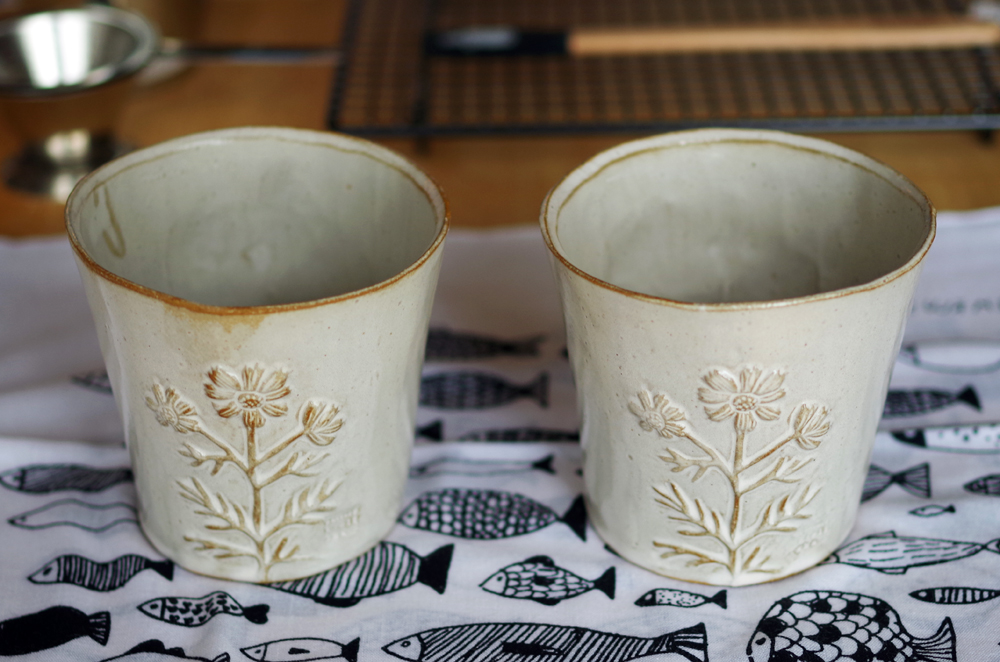 コスモスのレリーフが入った、大きめのカップは、お茶各種はもちろん、焼酎のお湯割りなどのお酒も楽しみたくなる、暖かいドリンクをグビッと飲みたくなる形。