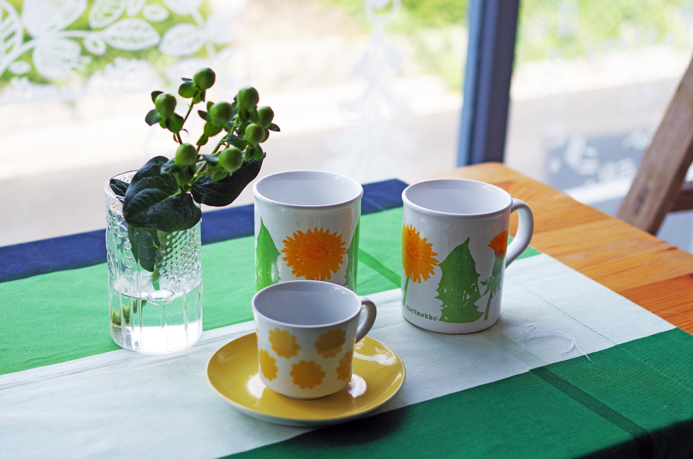 marimekko(マリメッコ)の、Voikukka(ヴォイクッカ/セイヨウタンポポ)柄の、ヴィンテージマグカップ。