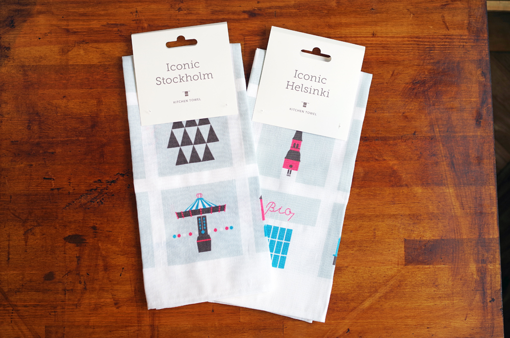 それぞれヘルシンキと、ストックホルムのアイコンとなる建物や風景が、シンプルかつ特徴的な図案デザインとして、プリントされてます。