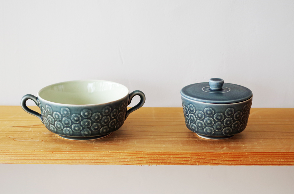ちょっとした違いが面白い個性を演出している、JHQアズールシリーズのデンマークを代表するヴィンテージ食器です。