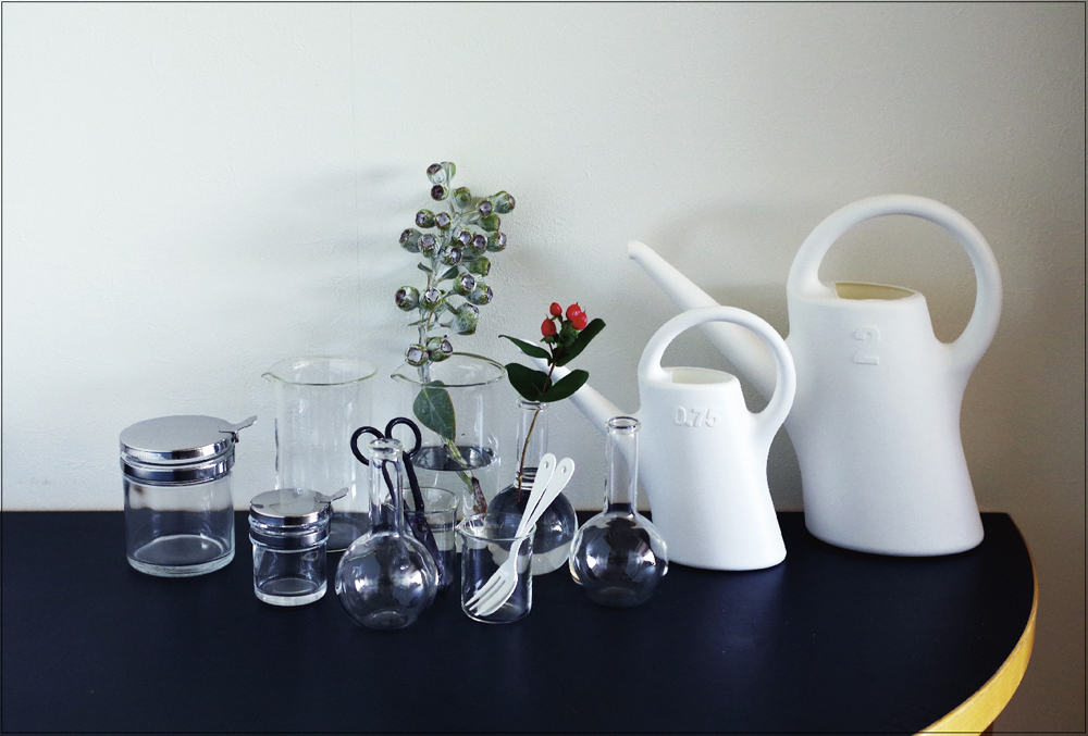 明治45年創業の小泉硝子製作所より、ビーカー、フラスコ、シャーレ、万能壺など、手吹きガラスならではの、絶妙な加減によって生み出される、独特な光の透過や屈折。