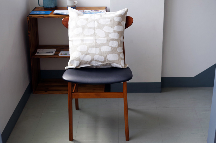 力強い躍動感あるドットが楽しく、かつシンプルで優しい印象を受ける、クッションカバー。