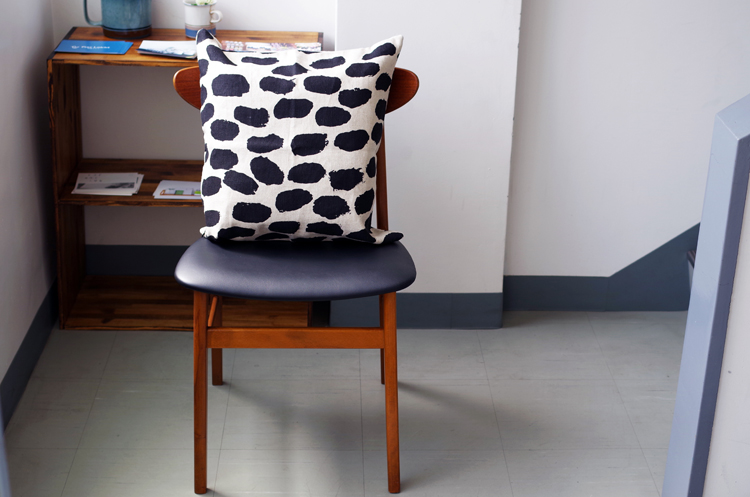 Fine Little Day(ファイン・リトル・デイ)の、ドット柄シリーズクッションカバーは、ゆったりと過ごす空間にもありがたい。