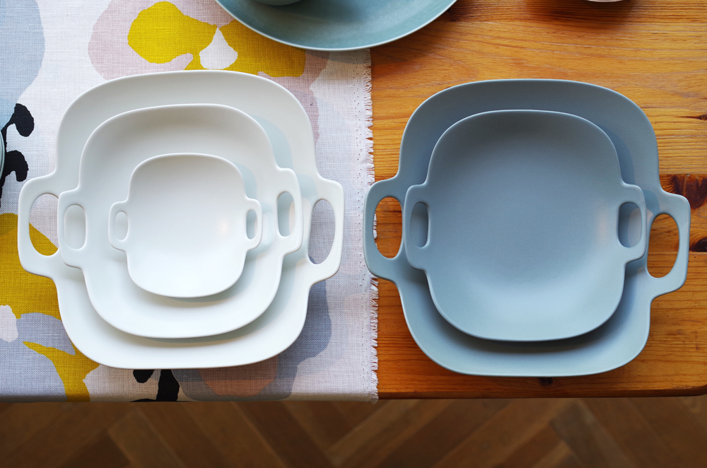 ハンドル付きの「yumiko iihoshi porcelain」の個性的なプレートは、そのような想いから生まれた、ユニークなフォルムの器です。