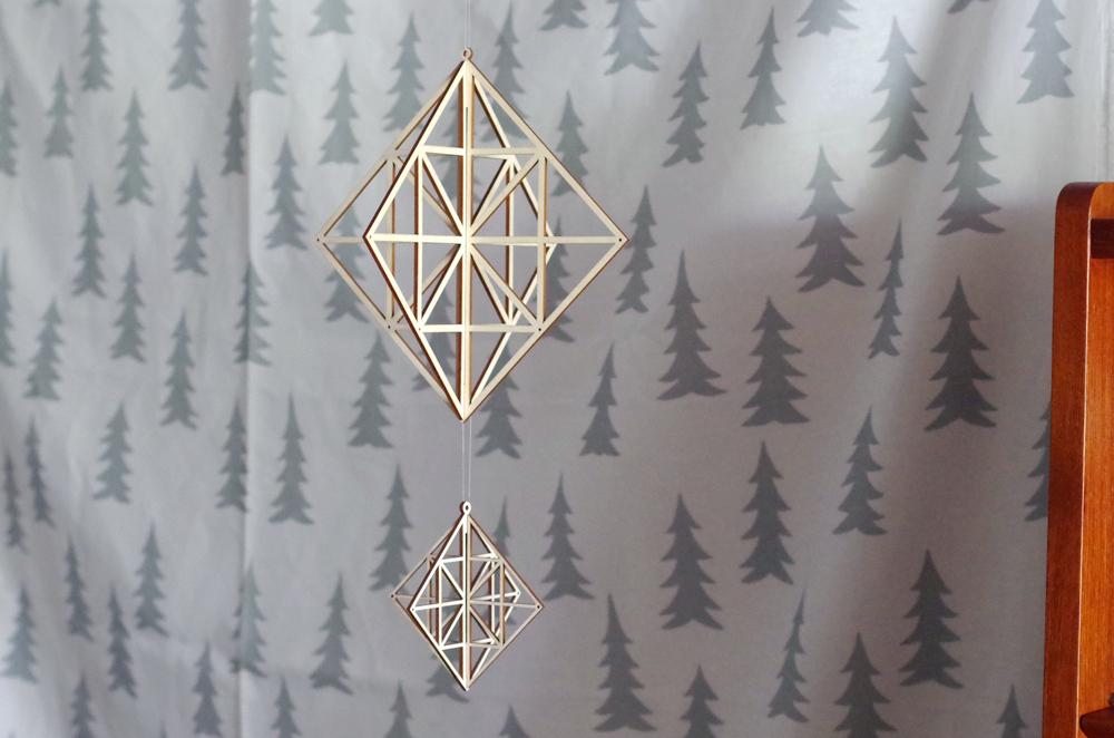 フィンランドの白樺の木を使った、カット素材を組み立てるキットで作るヒンメリは、本来の作り方では表現できない、新しいヒンメリとしての造形を提案してくれます。