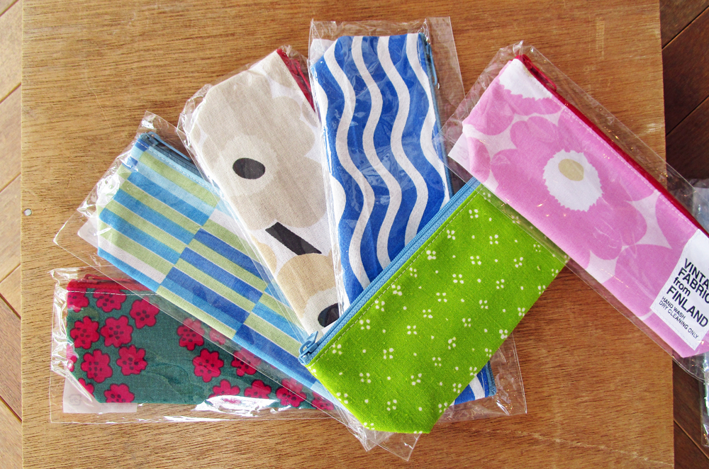 marimekkoなど、フィンランドのヴィンテージファブリックを使った、ペンケースも登場してます。