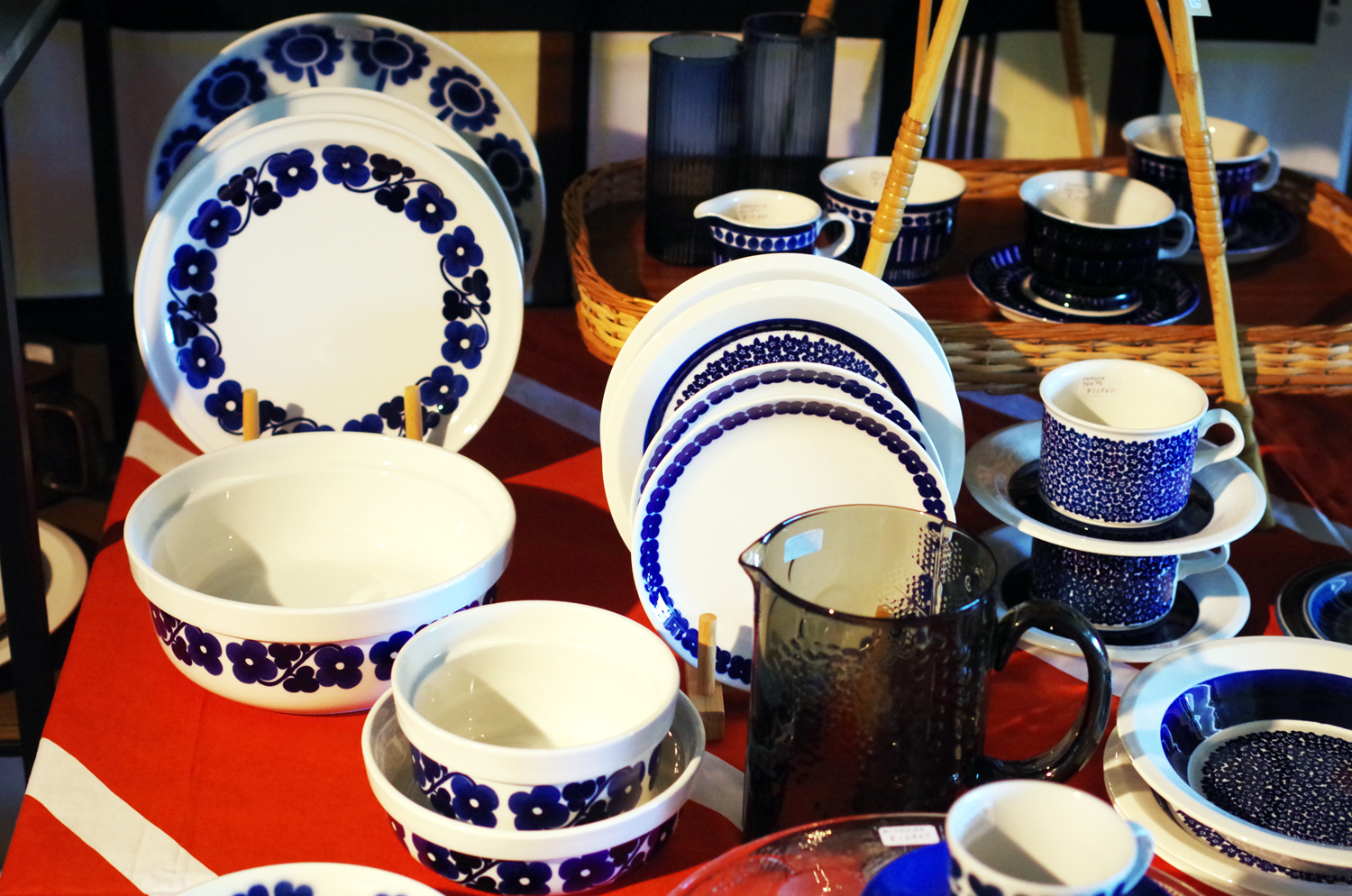 Ulla procope(ウラ・プロコッペ)の「Valencia(バレンシア)」シリーズや、ファエンツァ国際陶芸展で金賞し、Arabiaの名前をヨーロッパに知らしめた「Faenza(ファエンツァ)」シリーズ、Esteri Tomula(エステリ・トムラ)の「Aamu(アアム)」シリーズなど、ブルーで描かれた花や模様が可愛らしく美しい作品たち。
