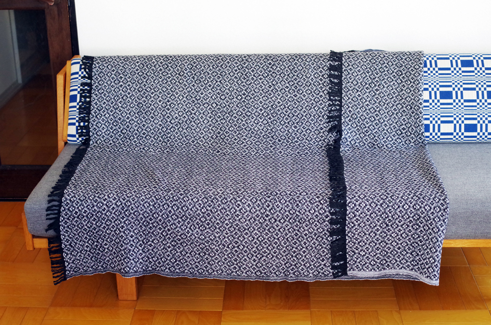 当店初登場となる、KETO柄のダークグレー×ホワイトカラーのブランケット。