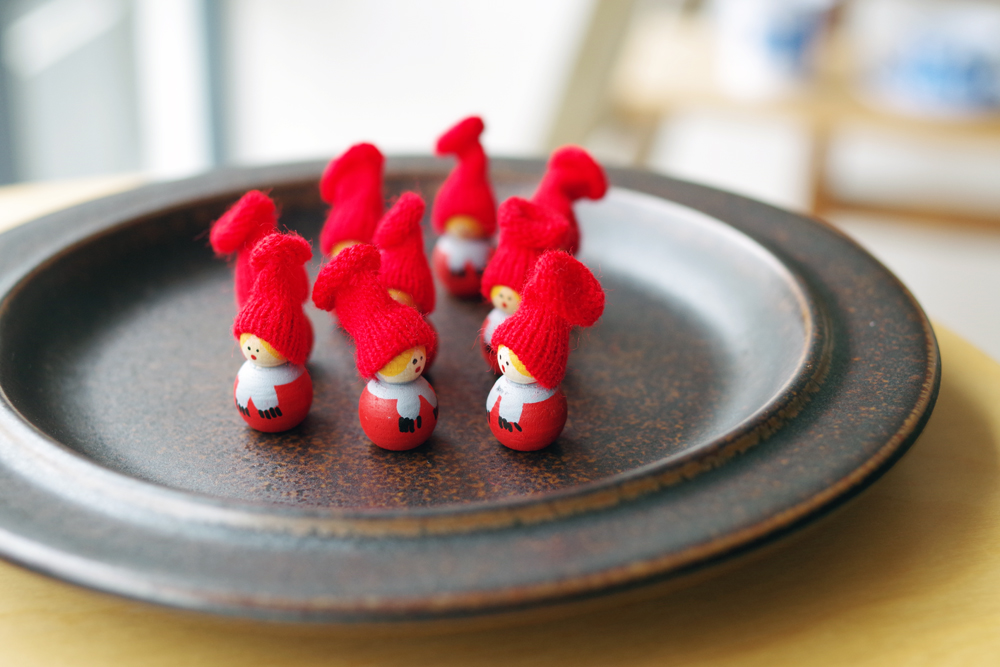 赤い服に白いマフラー、暖かそうなニット帽を身にまとった、かわいいミニミニサイズ。みんな集まっておしゃべりに夢中!?