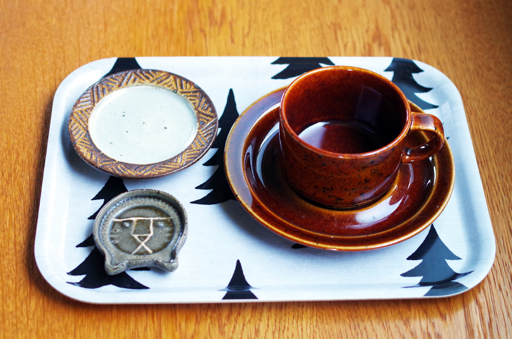 小タイプは、カップアンドソーサーと、豆皿が乗ると丁度よいサイズ感の、コーヒorティータイムサイズです。