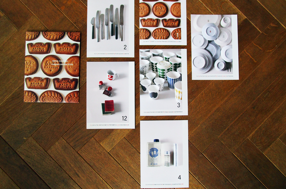 retro numberの店主が、独自の視点でコレクションした、様々なヴィンテージ・アンティークアイテムたちが、シンプルで美しいスタイリングで切り取られたカレンダー。