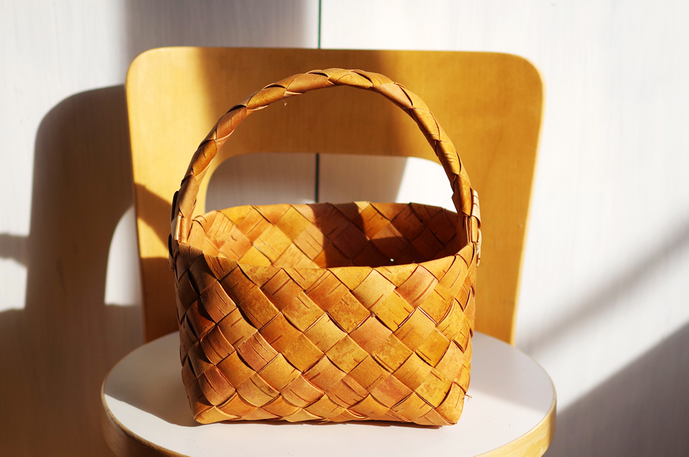 スウェーデンの白樺樹皮で丁寧に編まれた作品は、蓄積された経験と技術で美しい仕上がり。