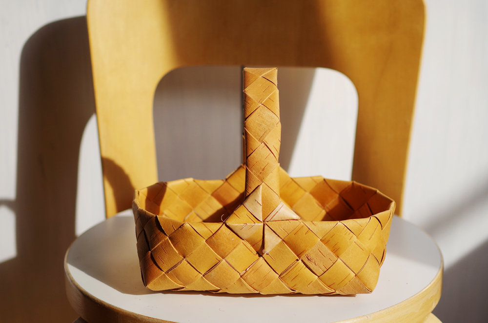 ブロールさんの特徴が出ているハンドルの根本は、白樺の樹皮が表裏に編んであって風車のよう。