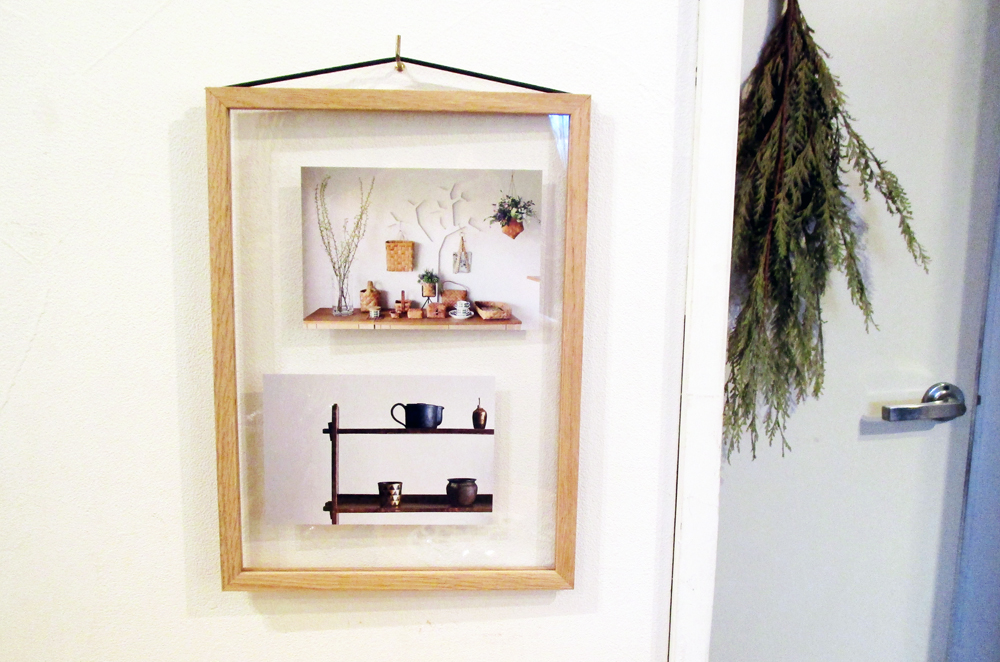 2枚のアクリルパネルを四方のオーク無垢材で囲ったシンプルなフレームは、飾るモノをとても自然に空間に加えてくれる、優れたアイテムです。