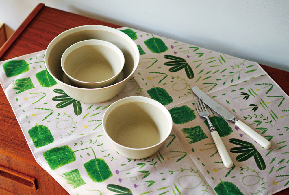 3月は素敵なハンカチと食器が、集う空間となってます。