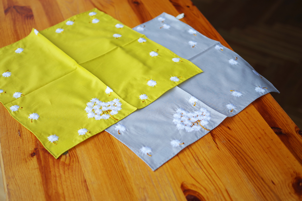 タンポポと、舞う綿毛が、丁寧な刺繍で表現されてます。