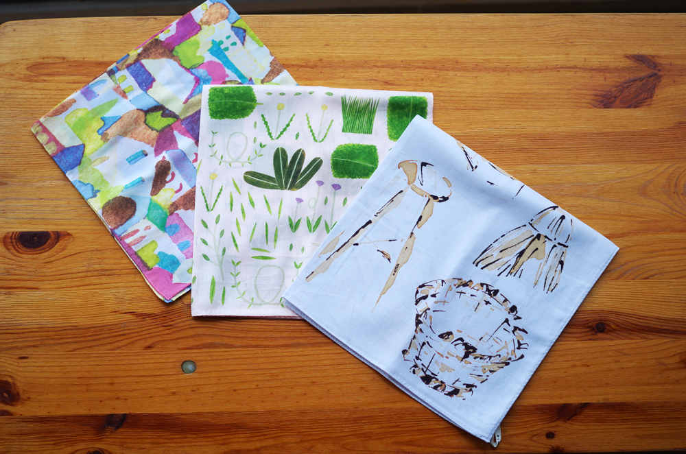各クリエイターがデザインした図案が、プリントされたシリーズのハンカチも登場してます。