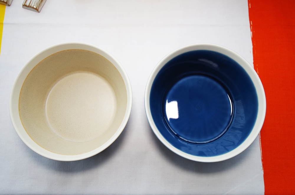イイホシ作品らしいマットなモスグレーと、ちょっと珍しい艶ありインクブルー。