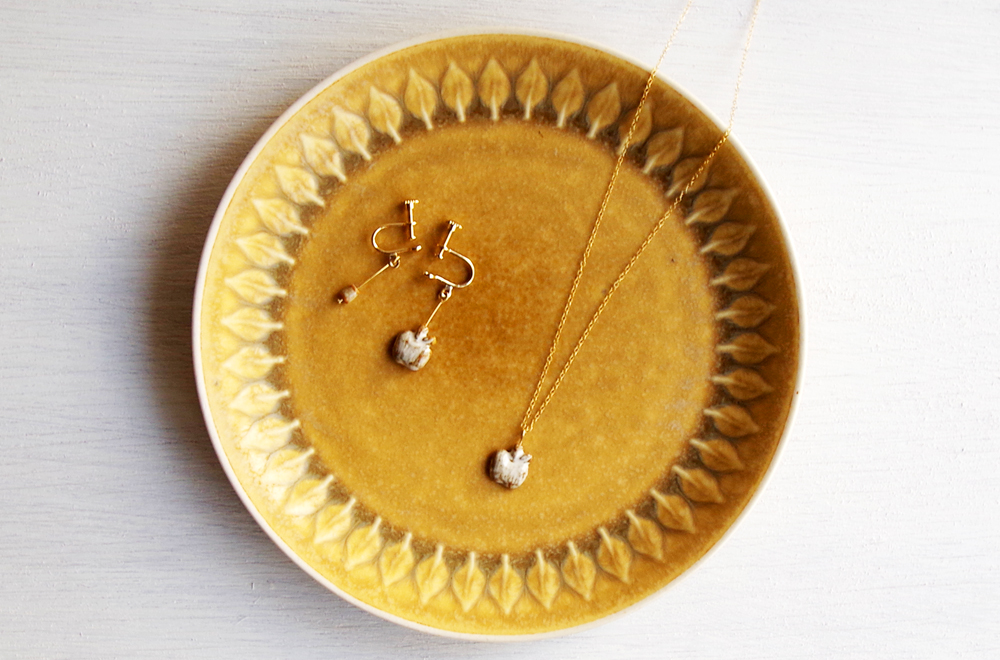 カワイイのはもちろん、陶の素材感との相乗効果で、かなりオリジナリティ溢れるアクセサリーになってます。