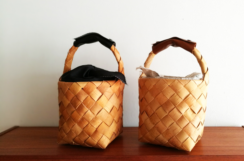 Näverslöjd(スウェーデン語/白樺の樹皮工芸)を冠する、「Näverslöjd Bror(ブロール)」さんの白樺ハンドル付きバスケット。