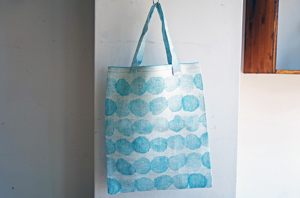 LAPUAN KANKURIT の「SADEKUURO(にわか雨)」柄トートバッグ。