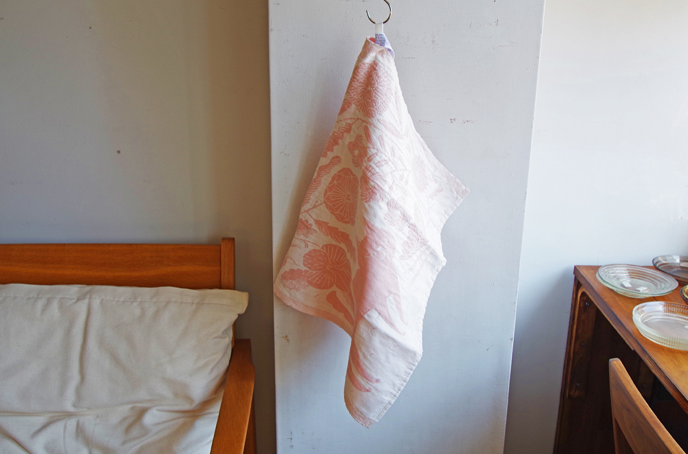 ウォッシュドリネンとコットンの、柔らかくて丈夫で、吸水性の良い素材感を活かした、キッチンタオルです。