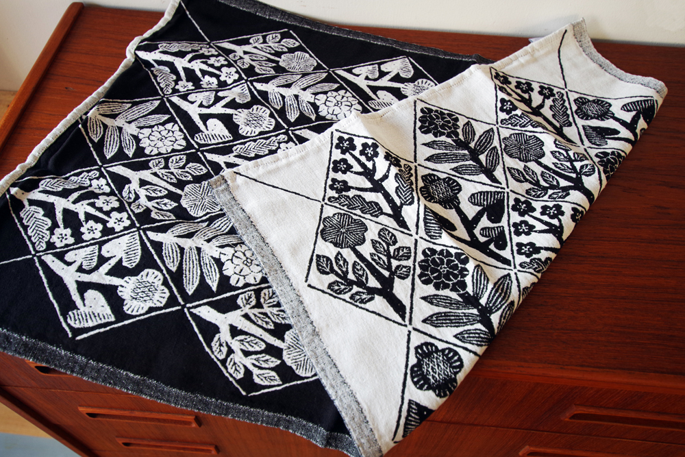 「 KUKAT(花々)」をモチーフにデザインされた、鹿児島睦さんデザインのキッチンタオル。