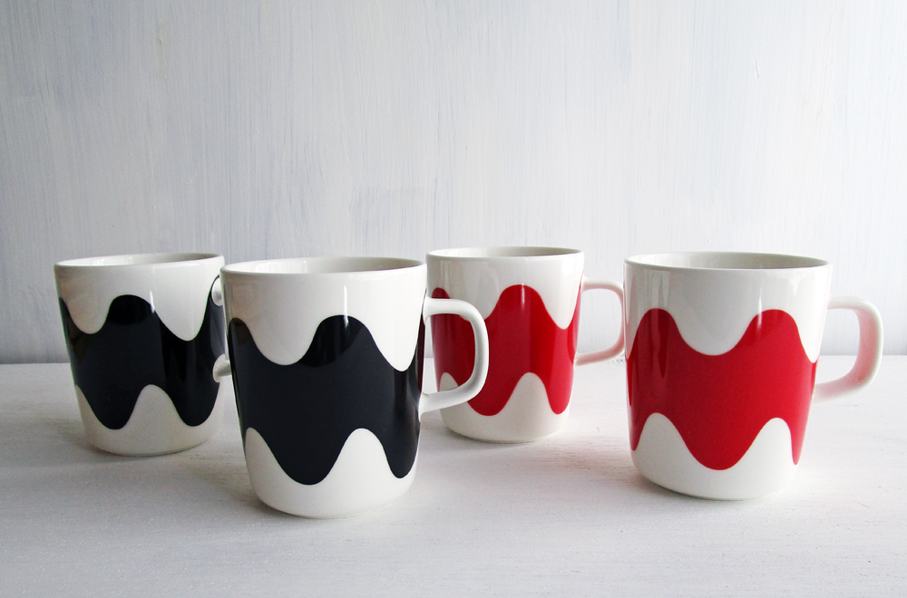 marimekko(マリメッコ)「Maija Isola(マイヤ・イソラ)」のテキスタイルデザインの名作「Lokki(ロッキ)」柄がプリントされたマグカップです。