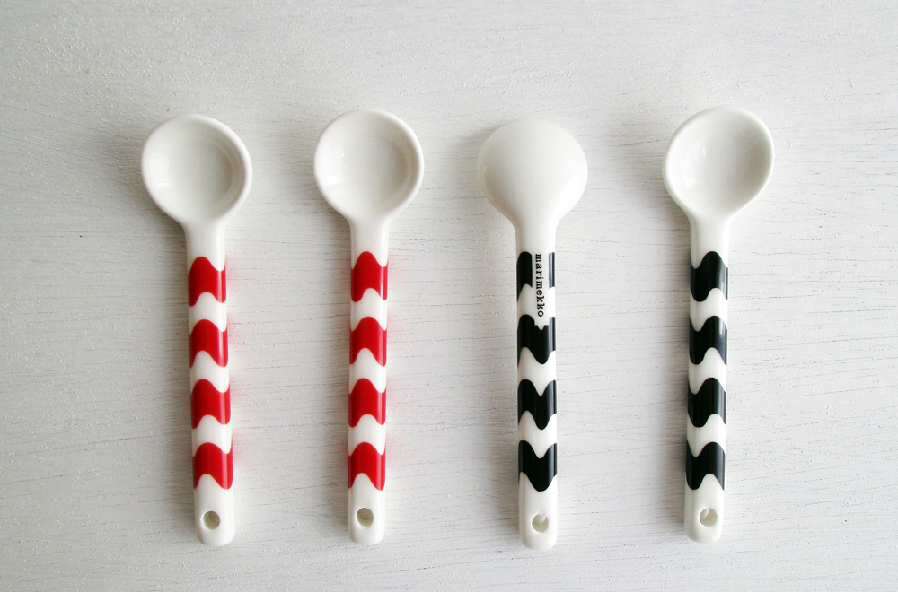 marimekko(マリメッコ)「Maija Isola(マイヤ・イソラ)」のテキスタイルデザインの名作「Lokki(ロッキ)」柄がプリントされた、小ぶりのスプーンです。