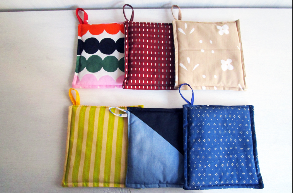marimekko(マリメッコ)のヴィンテージファブリックを使った、オリジナルポットホルダー。