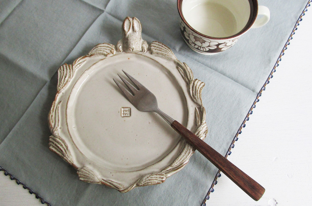 満月のようなまん丸のプレートに、リムを覆うススキとウサギさん。