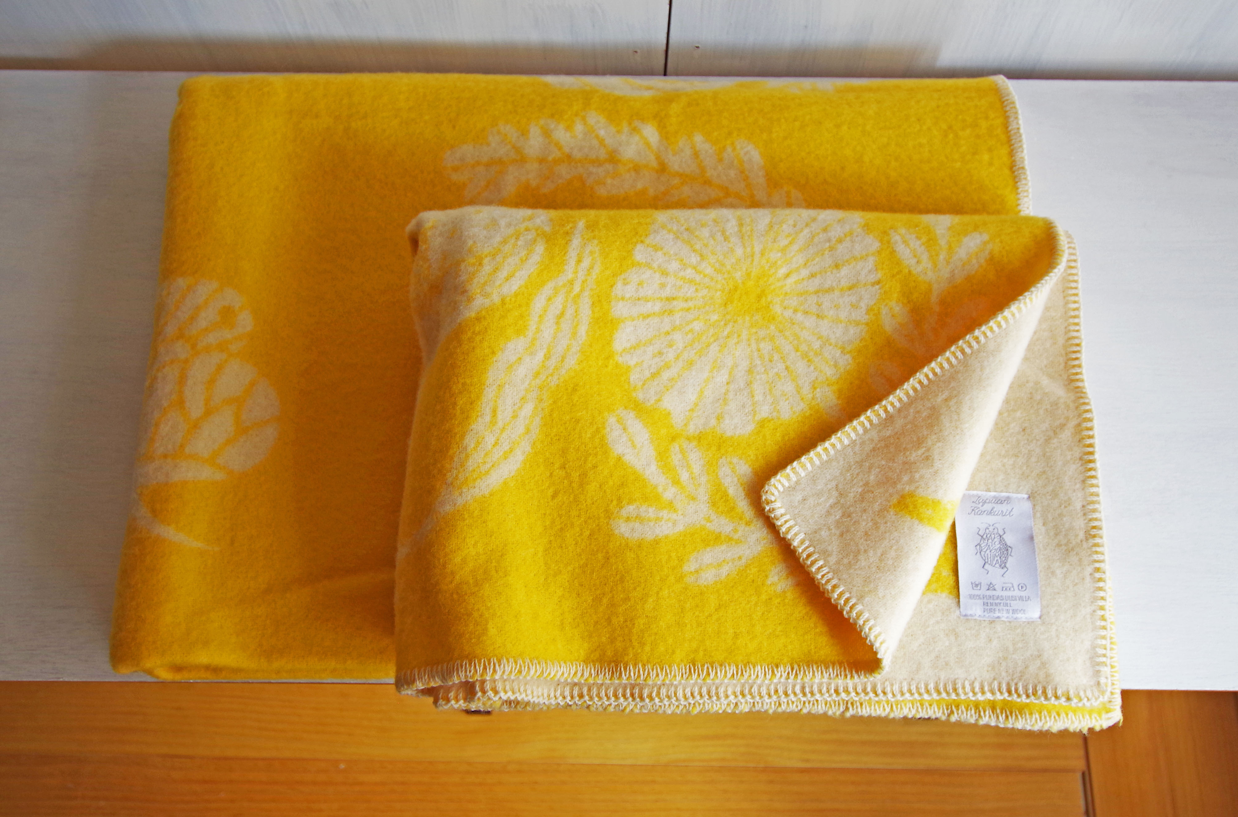 鹿児島睦さんデザインのウールブランケット「VILLIKUKKA(野生の花)」シリーズ。