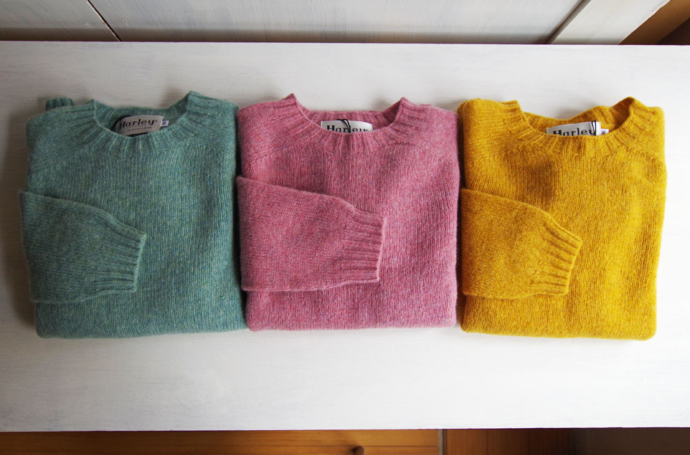 スコットランドの羊毛を使用し、柔らかくふんわりとした編み上がりが特徴のセーター。