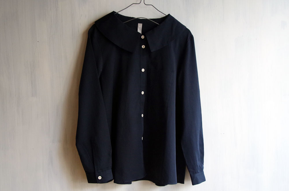 ニットやノーカラーコートを上に着て、襟だけ出してみてもステキ。