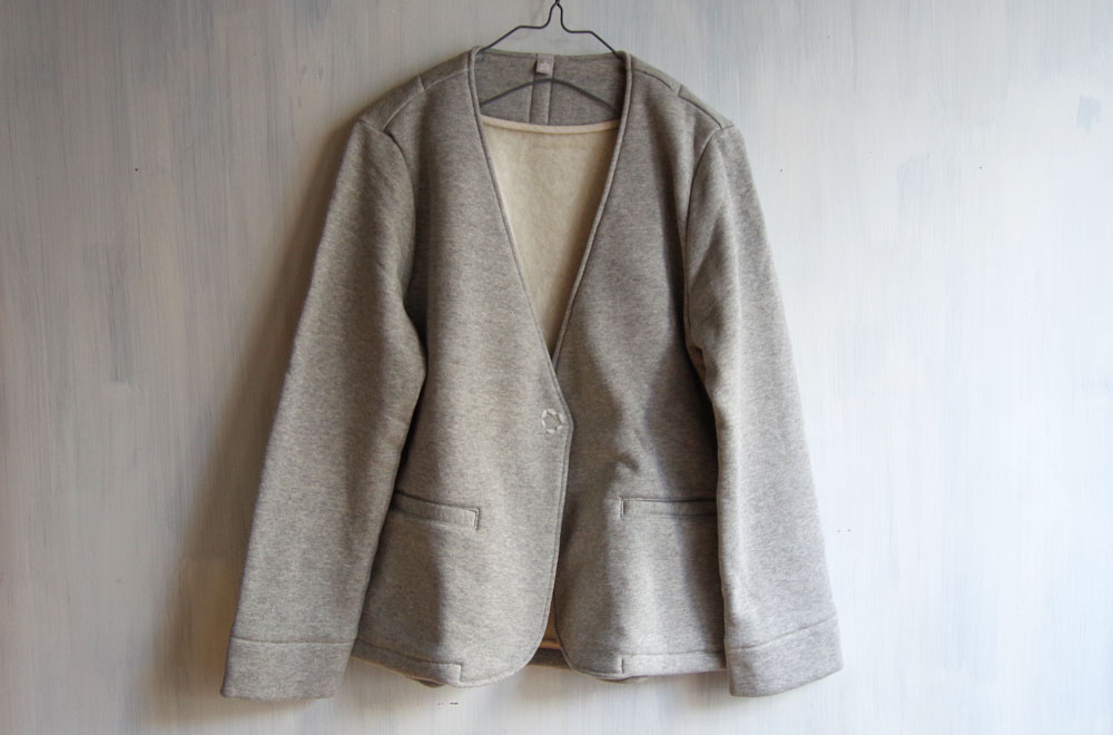 軽くて暖かい、スウェット素材のジャケットです。
