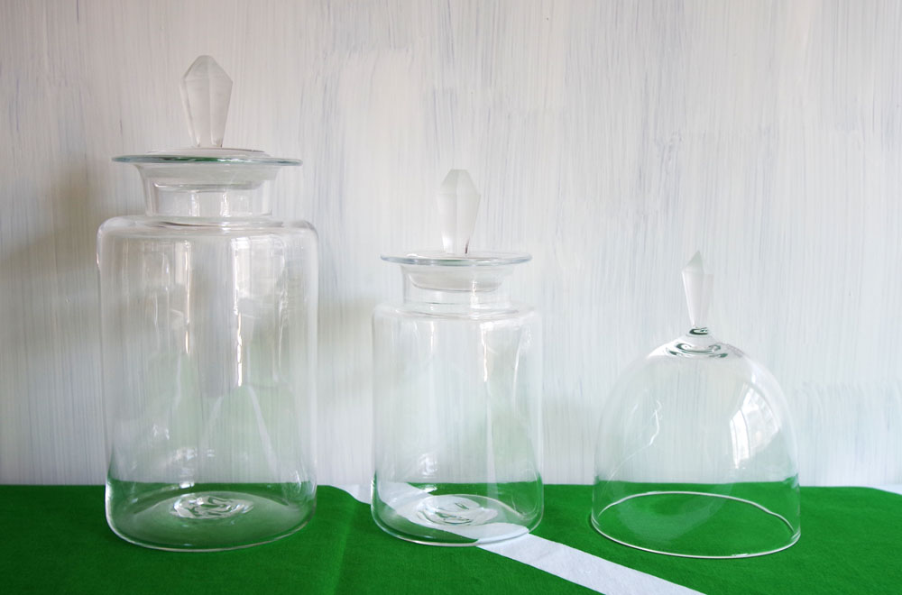 こちらは、すりガラスの持ち手が特徴的な、保存瓶と、ドーム。