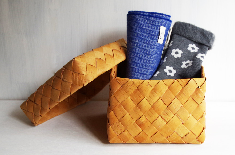 フィンランドの白樺工芸品作家「Kaija Karri(カイヤ・カッリ)」さんの作る、白樺のつづら型フタ付きカゴ。