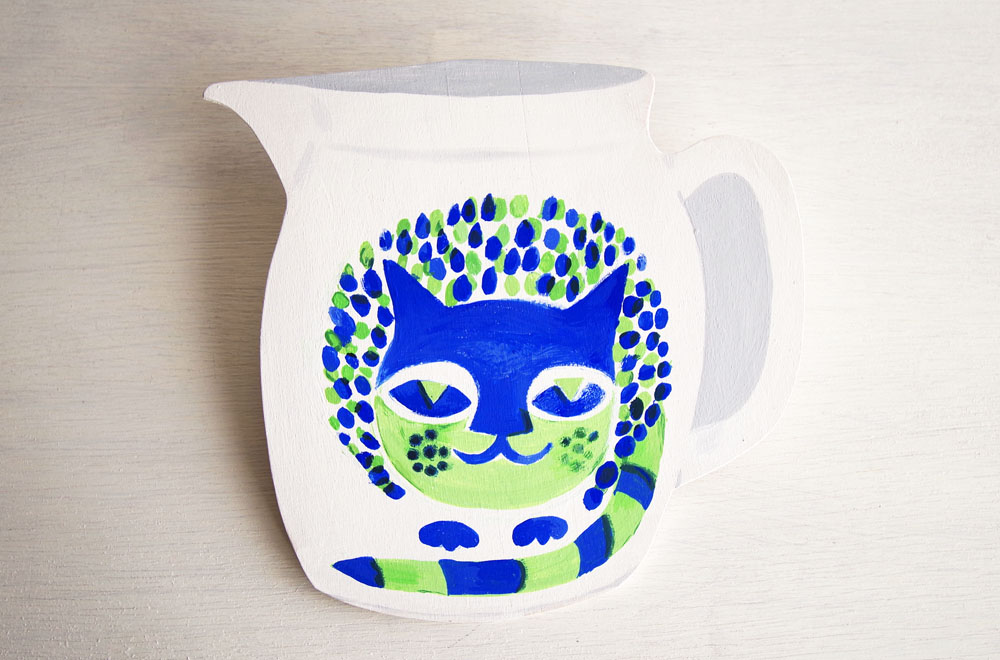 シンプルな白のピッチャーに鮮やかなブルーとグリーンで大胆に描かれたネコが印象的なこちらの作品は、「Kaj Franck(カイ・フランク)」がデザインを手掛けています。