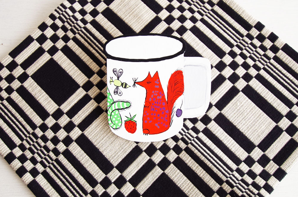 名前の通り、ノアの方舟をテーマに「Gunvaor Olin Gronqvist(グンヴォル・オリン・グラングヴィスト)」がデザインし、神話にまつわる動物たちが描かれています。こちらのプライウッドにはマグの前面、キツネと蜂、イチゴなどがマッティにより描かれています。