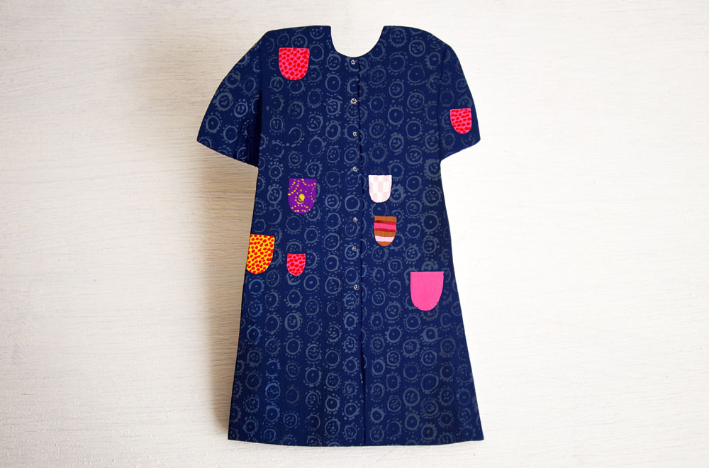 カラフルなポケットがたくさん付いたお洋服がマッティの手によって可愛らしいアートになりました。