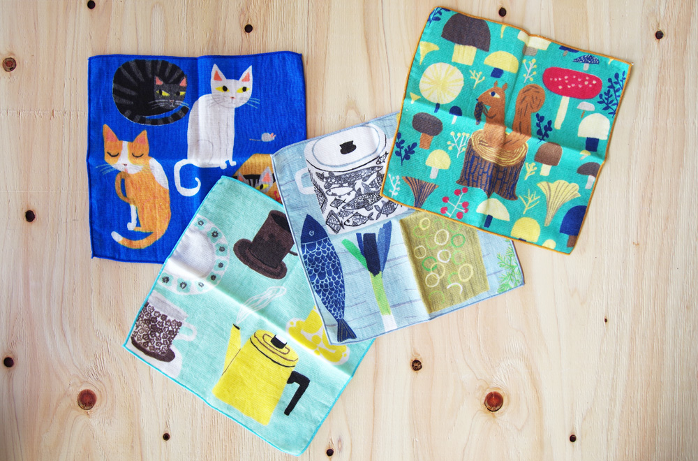 フィンランドのイラストレーター「Matti Pikkujämsä(マッティ・ピックヤムサ)」がデザインを手がけた、ガーゼハンカチ。