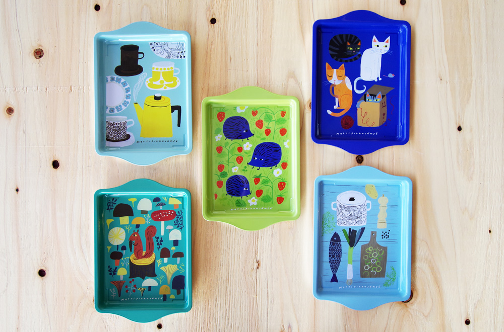 フィンランドのイラストレーター「Matti Pikkujämsä(マッティ・ピックヤムサ)」がデザインを手がけた、ブリキトレイ。