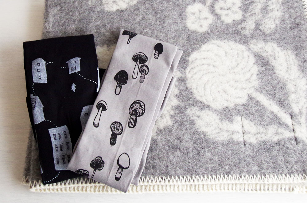 「Talot(家)」と「Sienet(キノコ)」。個性的なデザインは、ひとつずつハンドプリントにて仕上げられています。