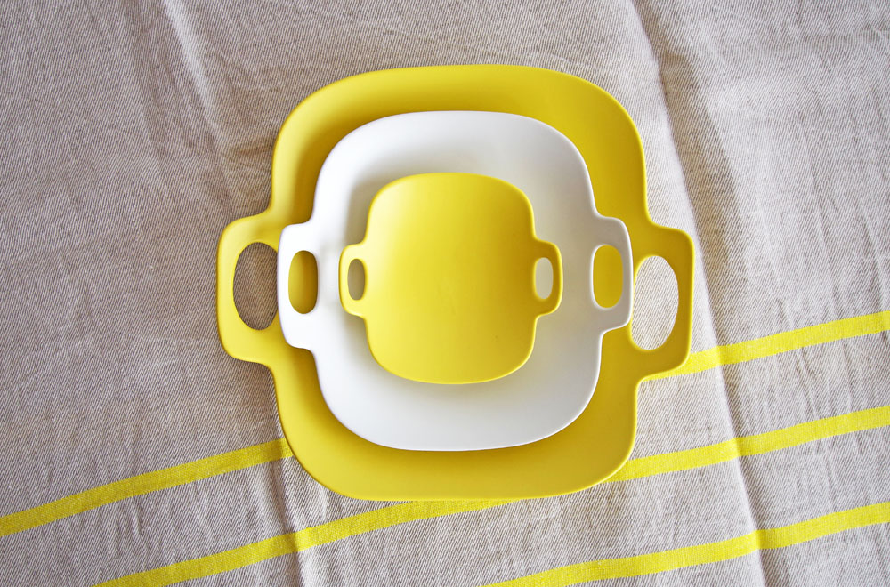 「旅に持っていく器」というコンセプトのプレート。ハンドル付きのユニークなデザイン。